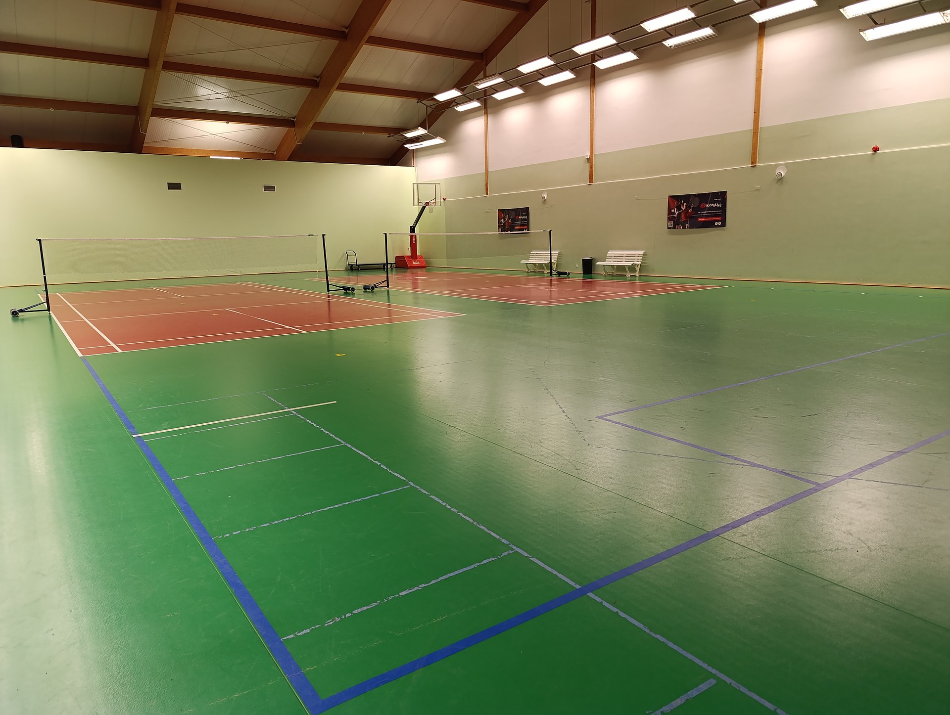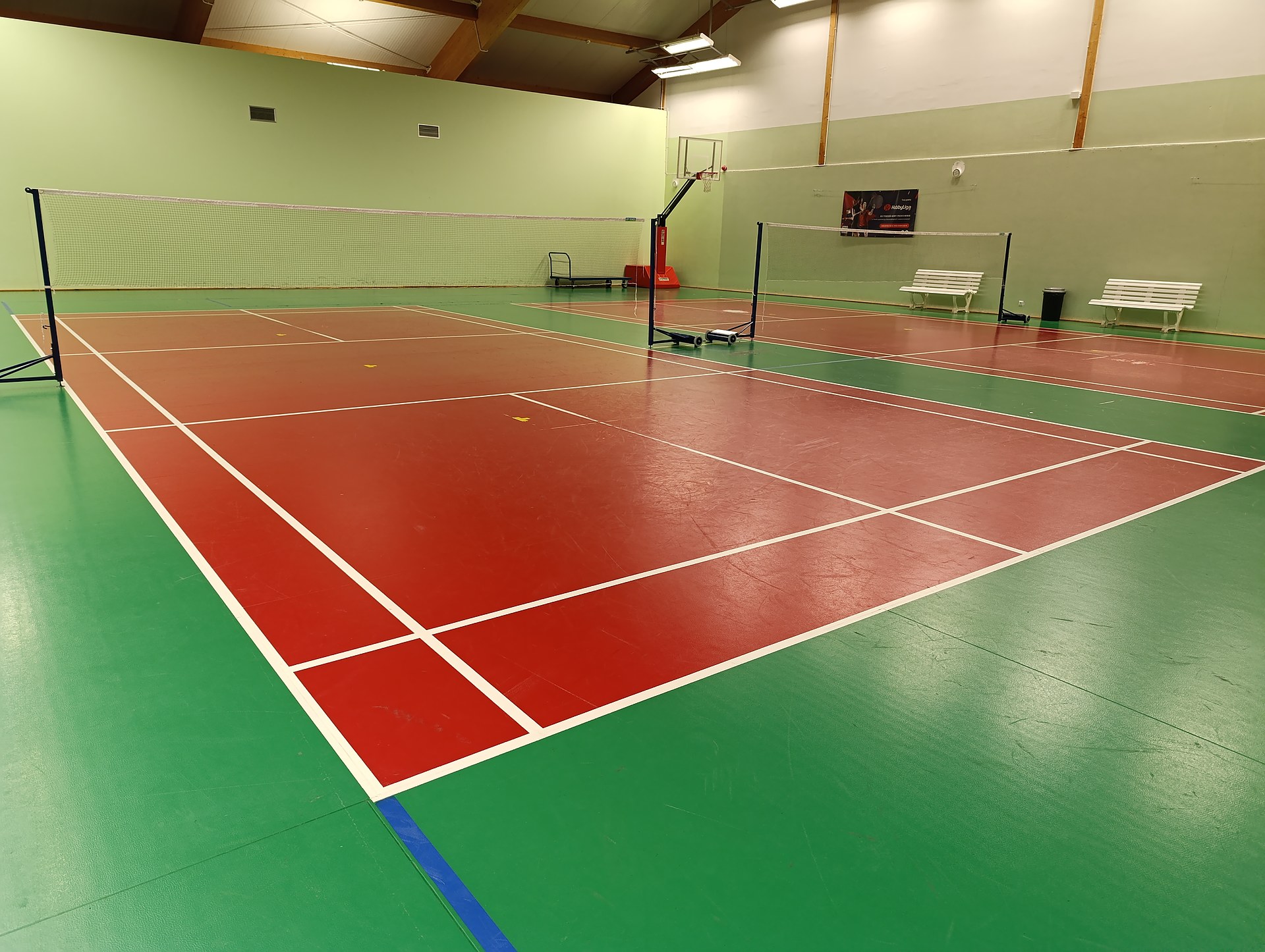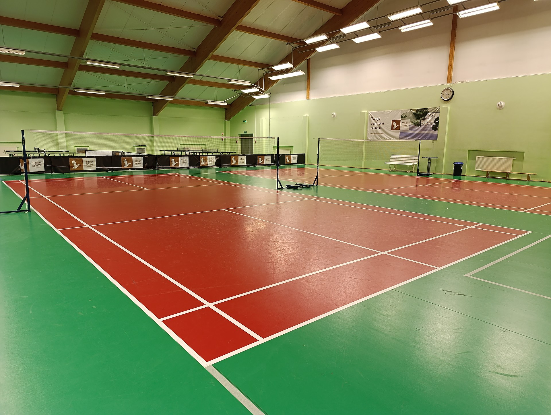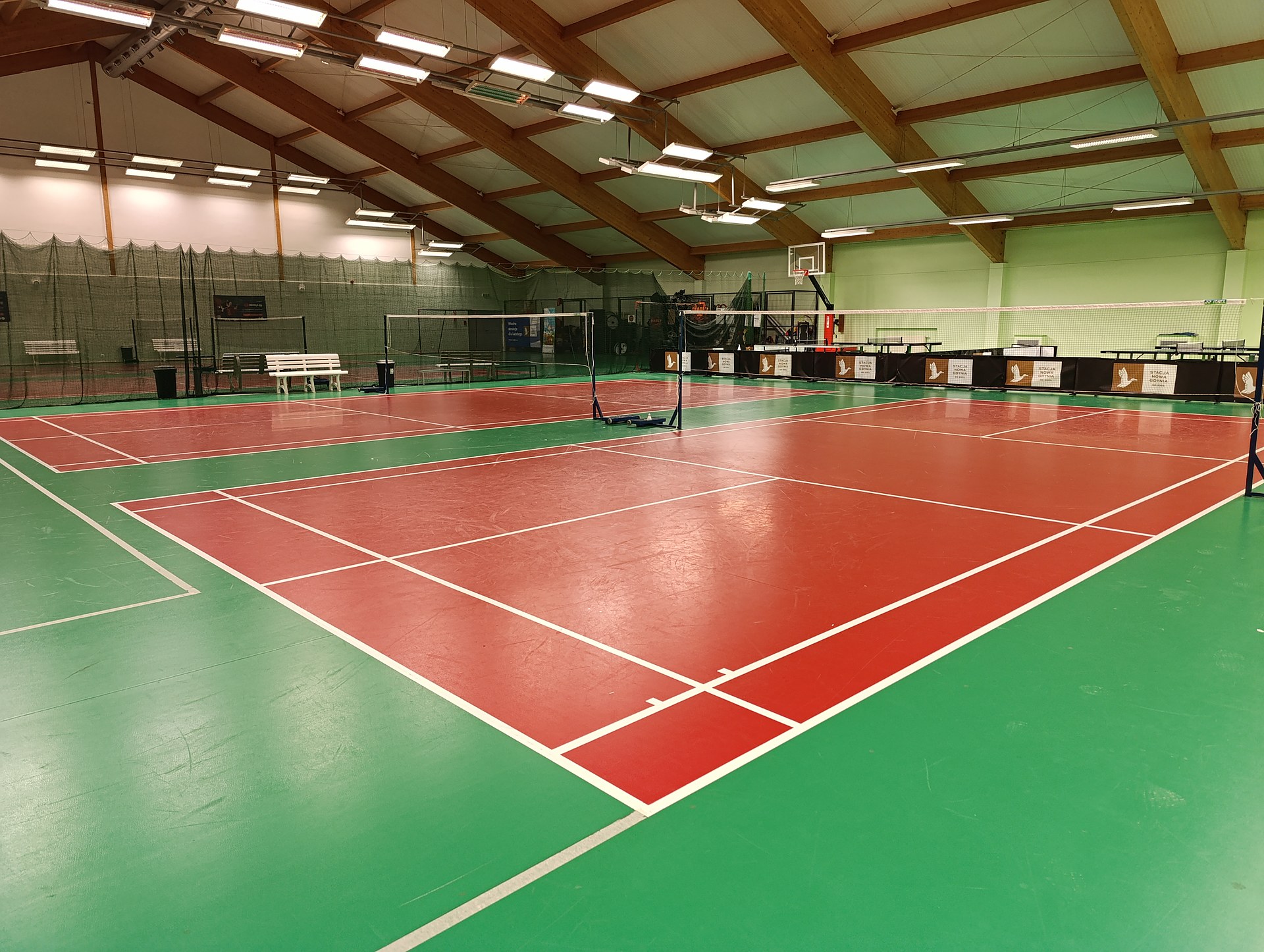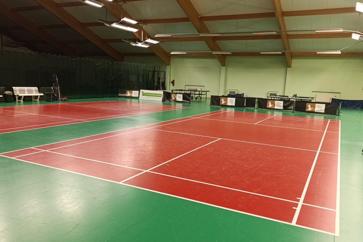 Dysponujemy czterema boiskami z nawierzchnia OMNISPORT z atestem BWF (Badminton World Federation) i legarowaną podłogą chroniącą stawy i więzadła graczy.