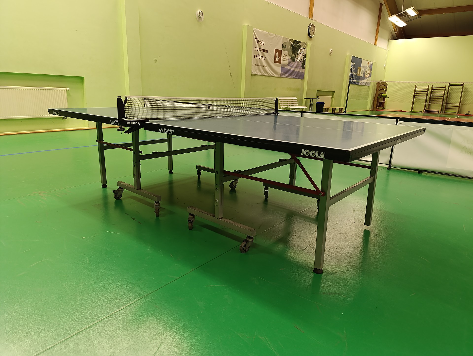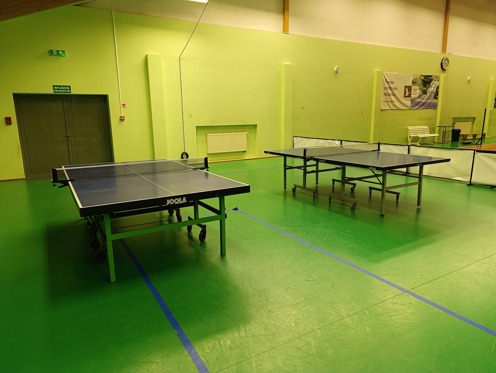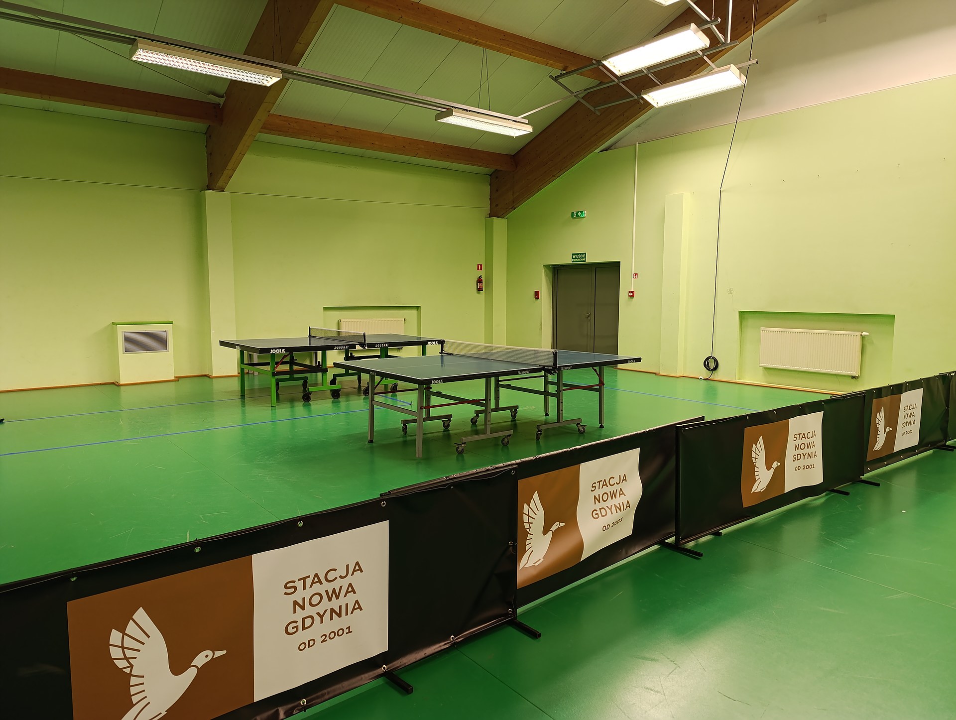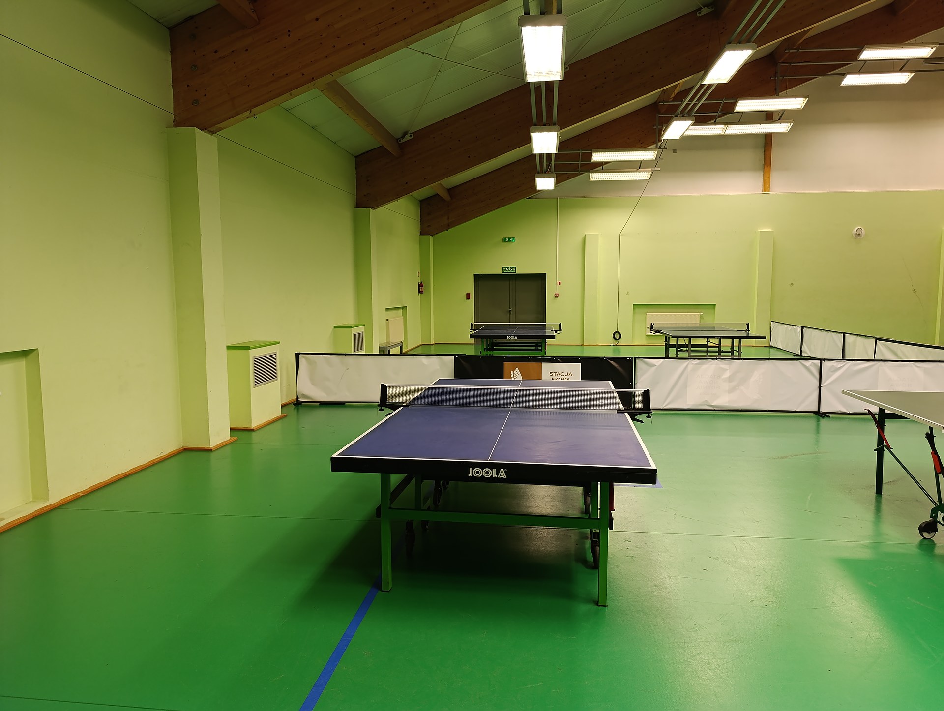 Strefa tenisa stołowego w Stacji Nowa Gdynia to komfortowa przestrzeń do gry rekreacyjnej i treningowej. Do dyspozycji są cztery stoły renomowanej marki Joola, legarowana podłoga zapewniająca odpowiednią sprężystość oraz wydzielone boksy z szerokimi wybiegami, które umożliwiają swobodną i bezpieczną grę. Całość mieści się w przestronnej hali z równomiernym, komfortowym oświetleniem.'